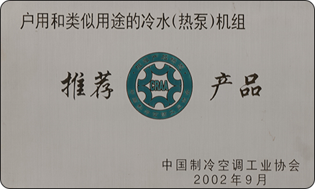 2002年9月,集團(tuán)“戶用和類似用途的冷水熱泵機(jī)組”被中國(guó)制冷空調(diào)工業(yè)協(xié)會(huì)評(píng)定為推薦產(chǎn)品。